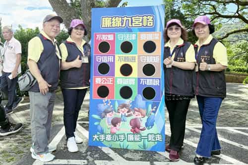 竹縣志工協助辦理「稻關西走走」,扎根廉潔誠信種苗於全民意識-廉政宣導結合九宮格趣味遊戲,寓教於樂